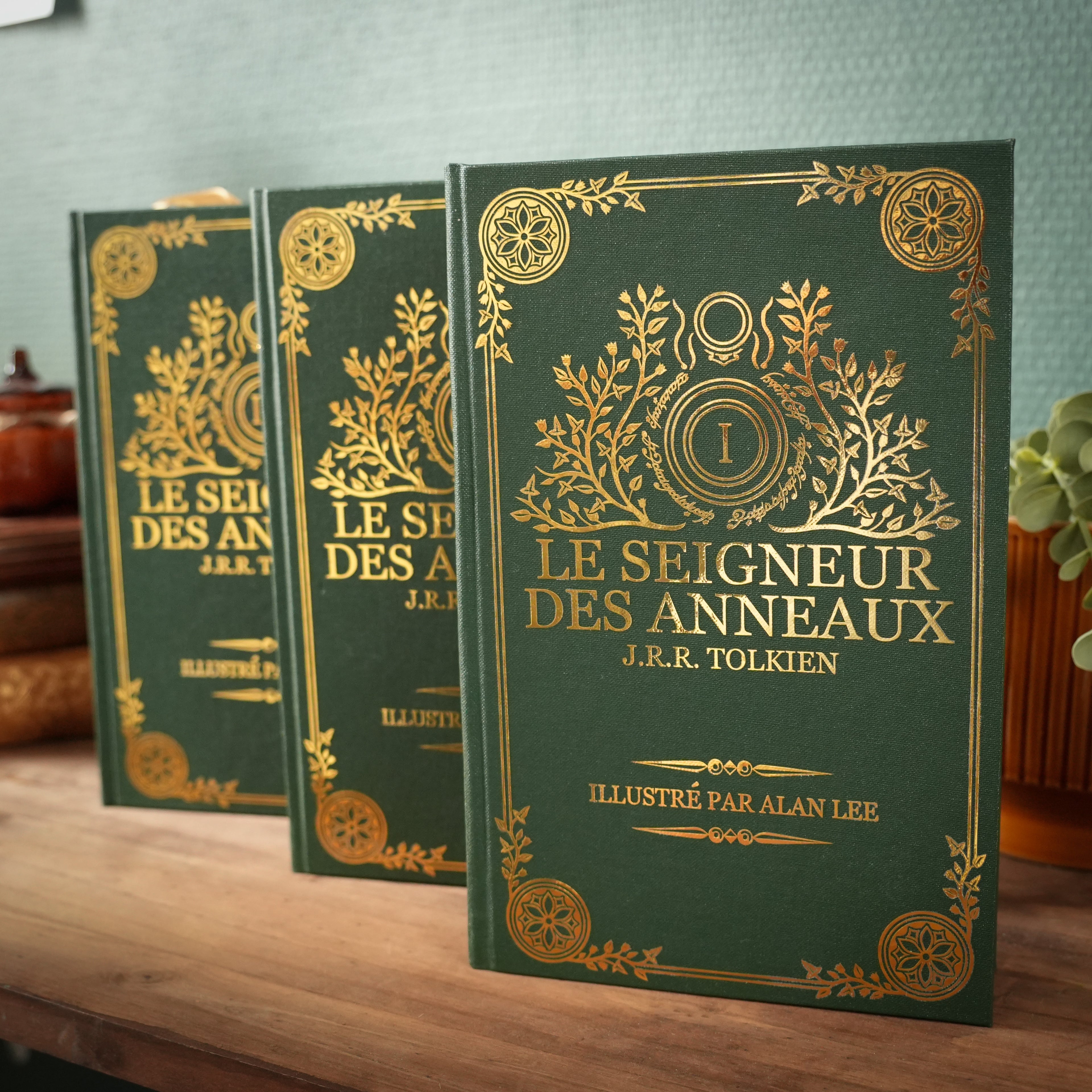 Plongez au cœur de la Terre du Milieu avec cette version unique de la trilogie du Seigneur des Anneaux, entièrement reliée à la main dans notre atelier à Lyon.